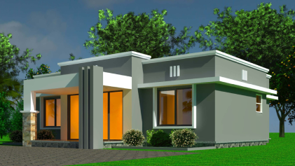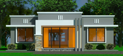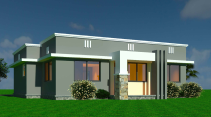 This 3-bedroom hidden roof house plan is a stylish and practical choice for families in Uganda. The hidden roof design adds a sleek, modern look while providing durability and reduced maintenance. The layout includes a spacious living room, dining area, and a modern kitchen. The master bedroom features an en-suite bathroom, while two additional bedrooms are perfect for children, guests, or a home office.
