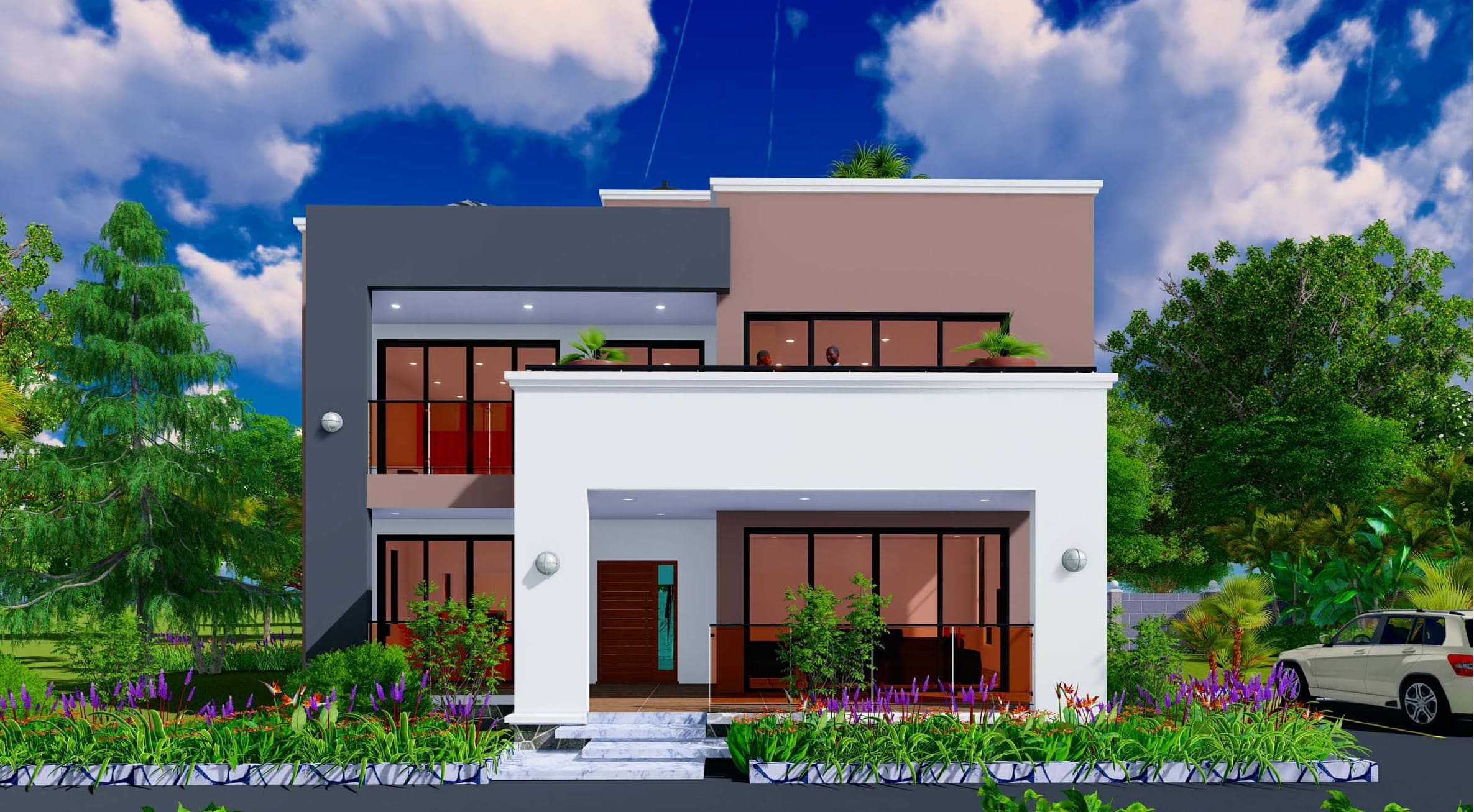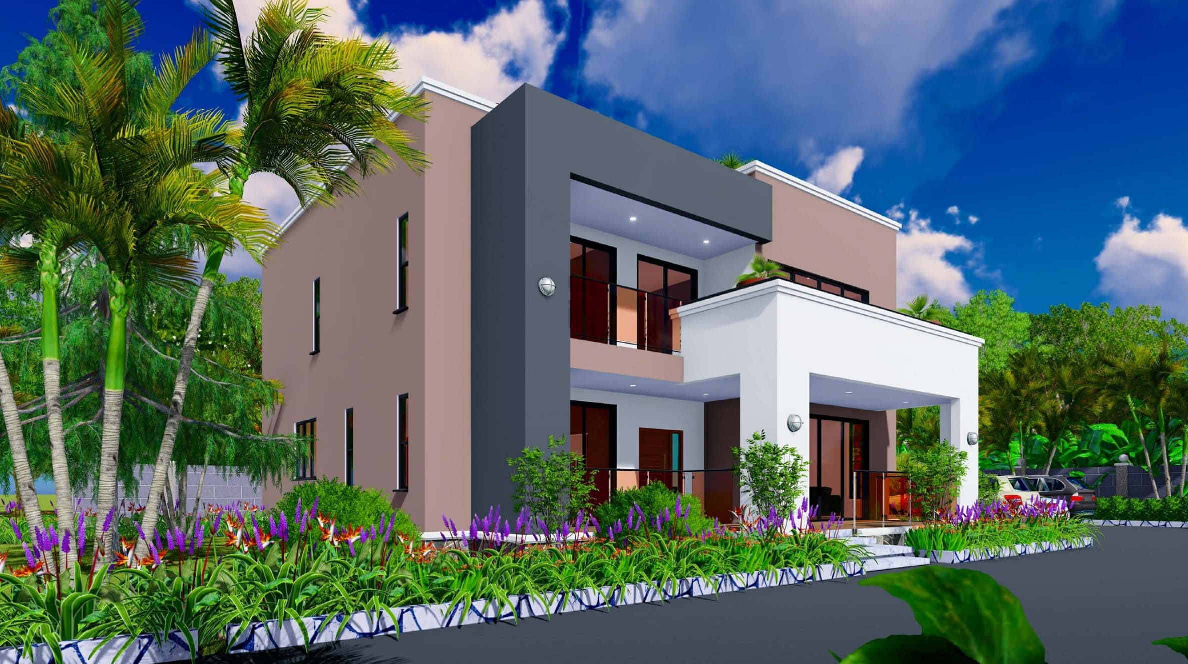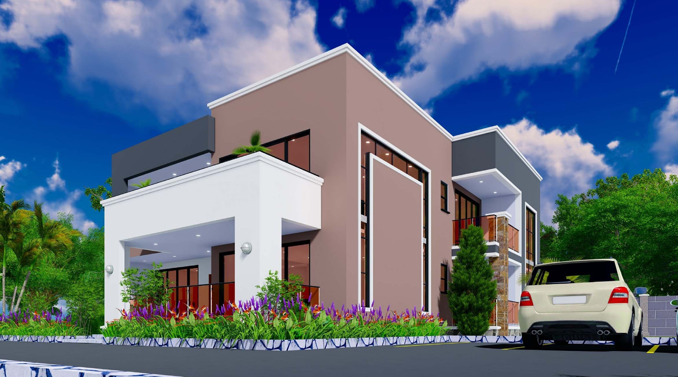 This modern five-bedroom double-storey house plan offers a spacious and functional layout suitable for contemporary residential living. The design provides comfortable indoor and outdoor spaces, making it ideal for families, rental housing, or private residential developments.
